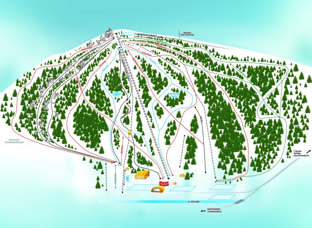Горнолыжный центр находится в Пермском крае, рядом с городом Губаха.